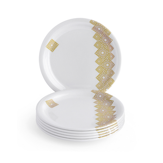 SUPERWARE | Pure Melamine | Dinner Plate Set – Golddeko (11.0") | 6 Nos. | Stain Free, Glazed Finish