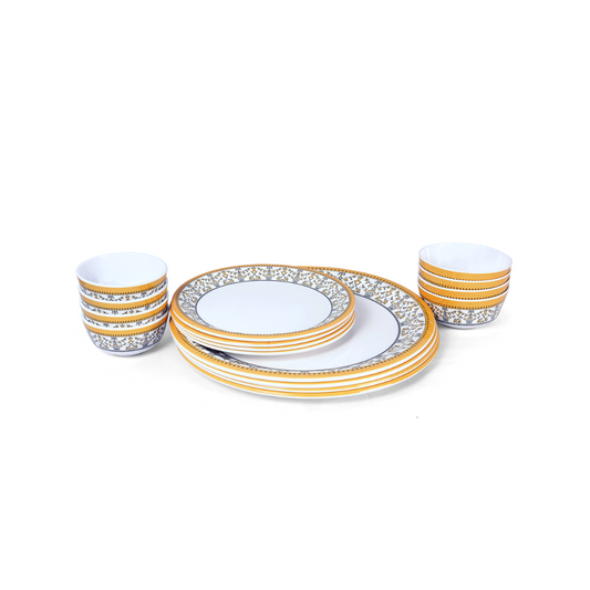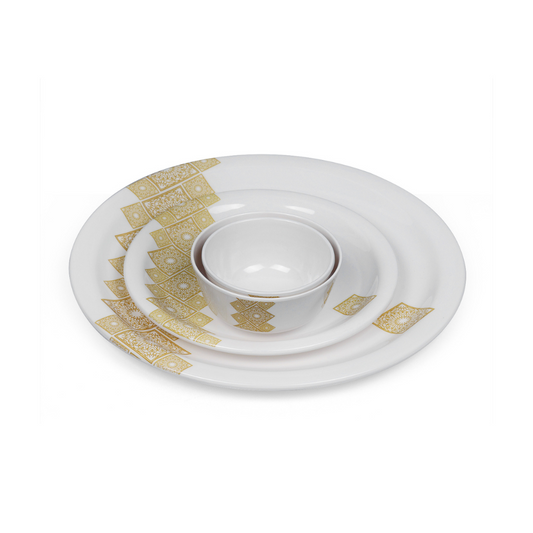 SUPERWARE | Pure Melamine | Dinner Set - GOLDDEKO | Set Of 16 Pcs. | Stain Free, Glazed Finish