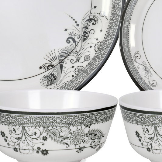 SUPERWARE | Pure Melamine | Dinner Set - SILVER LACE | Set Of 24 Pcs. | Stain Free, Glazed Finish