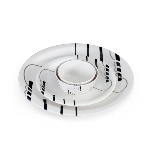 SUPERWARE | Pure Melamine | Dinner Set - STRIP & ROPES | Set Of 24 Pcs. | Stain Free, Glazed Finish