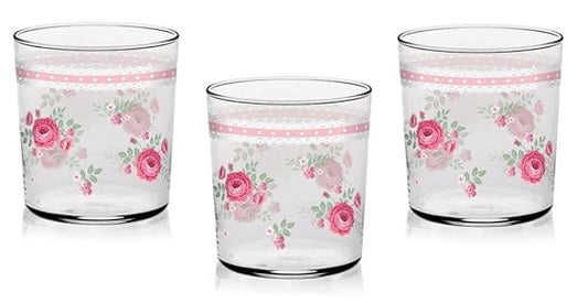 CERVE | Italy | Crystal Clear High Brilliance Lead Free Glass | Tumbler | Rosebud | 3 Nos.