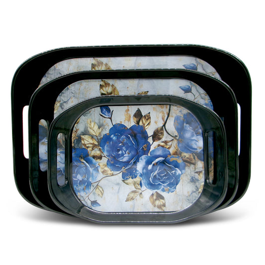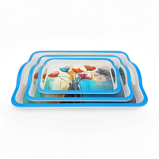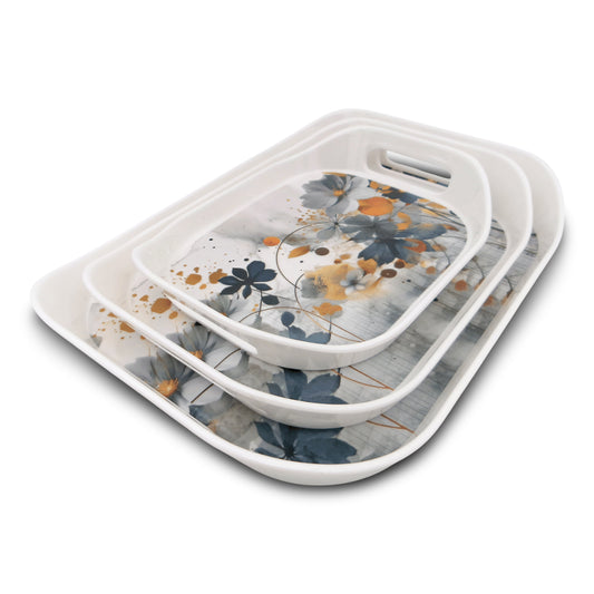 SUPERWARE | Pure Melamine | Matrix Tray Set - Azure Poppy | Set Of 3 Pcs.| Stain Free, Glazed Finish