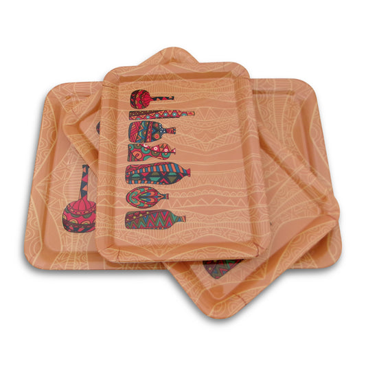 SUPERWARE | Pure Melamine | Retro Tray Set - African Vases | Set Of 3 Pcs.| Stain Free, Glazed Finish
