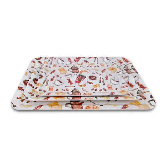 SUPERWARE | Pure Melamine | Retro Tray Set - Coffee House | Set Of 3 Pcs.| Stain Free, Glazed Finish