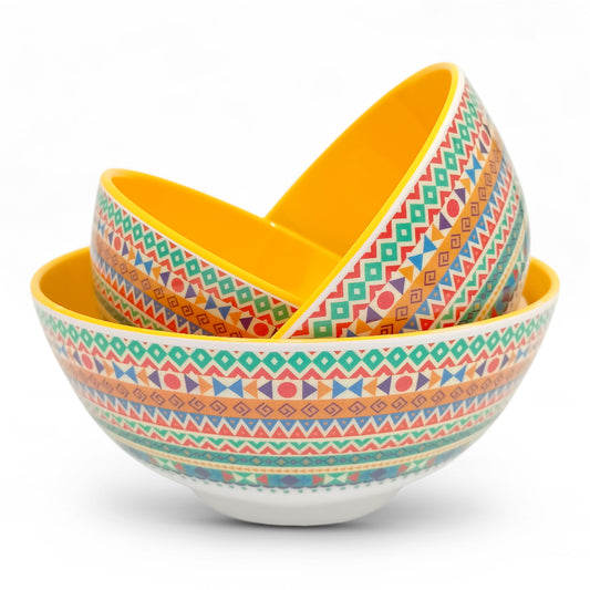 SUPERWARE | Pure Melamine | Snack Bowl Set - Two Tone TRIANGLE-YELLOW | Set of 3 Pcs. | Stain Free, Glazed Finish