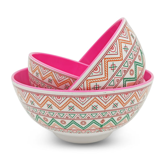 SUPERWARE | Pure Melamine | Snack Bowl Set - Two Tone MONTE-PINK | Set of 3 Pcs. | Stain Free, Glazed Finish
