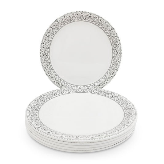 SUPERWARE | Pure Melamine | Buffet Plate Set – Silver Lace (12.5”) | 6 Nos. | Stain Free, Glazed Finish