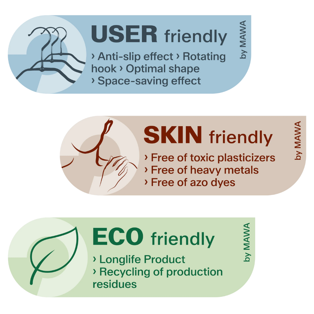 · Uniform hanging height: Can be perfectly combined with other MAWA hangers, creating a harmonious look in your closet.