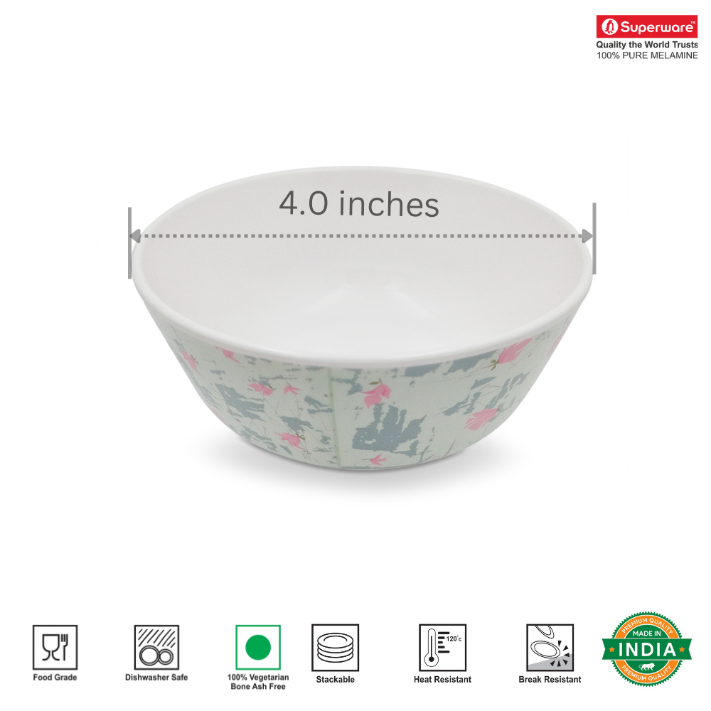 SUPERWARE | Pure Melamine | Bowl Set - Armanian 4" | 6 Nos. | Stain Free, Glazed Finish