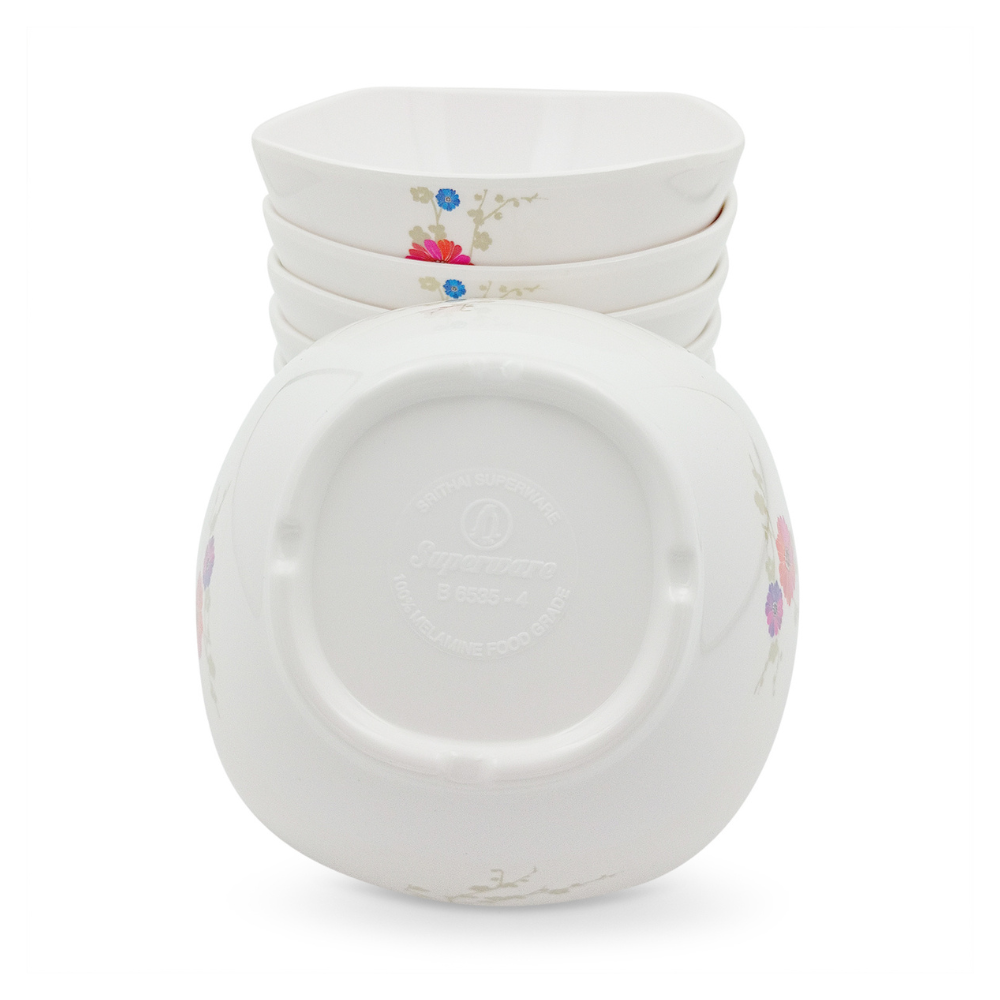 SUPERWARE | Pure Melamine | Bowl Set - Barberto Daisy 4" | 6 Nos. | Stain Free, Glazed Finish