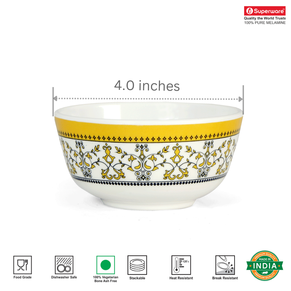SUPERWARE | Pure Melamine | Bowl Set - ForgetMeNot 4" | 6 Nos.| Stain Free, Glazed Finish