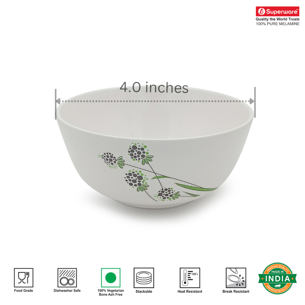 SUPERWARE | Pure Melamine | Bowl Set - Green Berry 4" | 6 Nos.| Stain Free, Glazed Finish