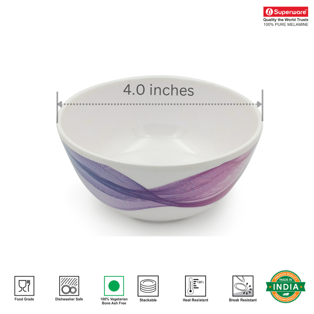 SUPERWARE | Pure Melamine | Bowl Set - Silky 4" | 6 Nos. | Stain Free, Glazed Finish