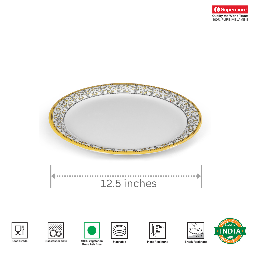 SUPERWARE | Pure Melamine | Buffet Plate Set – ForgetMeNot (12.5”) | 6 Nos. | Stain Free, Glazed Finish