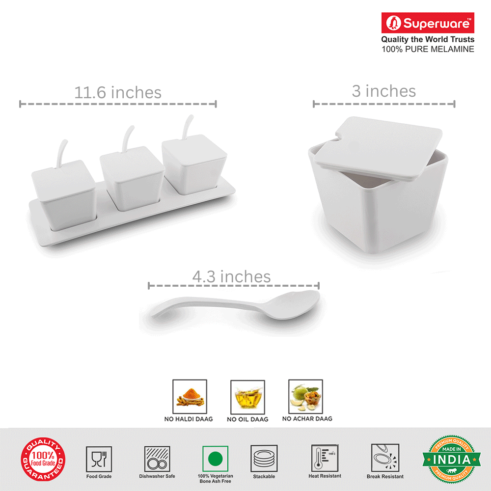 SUPERWARE | Pure Melamine | Condiment Set | Set of 10 Pcs.| Stain Free, Glazed Finish