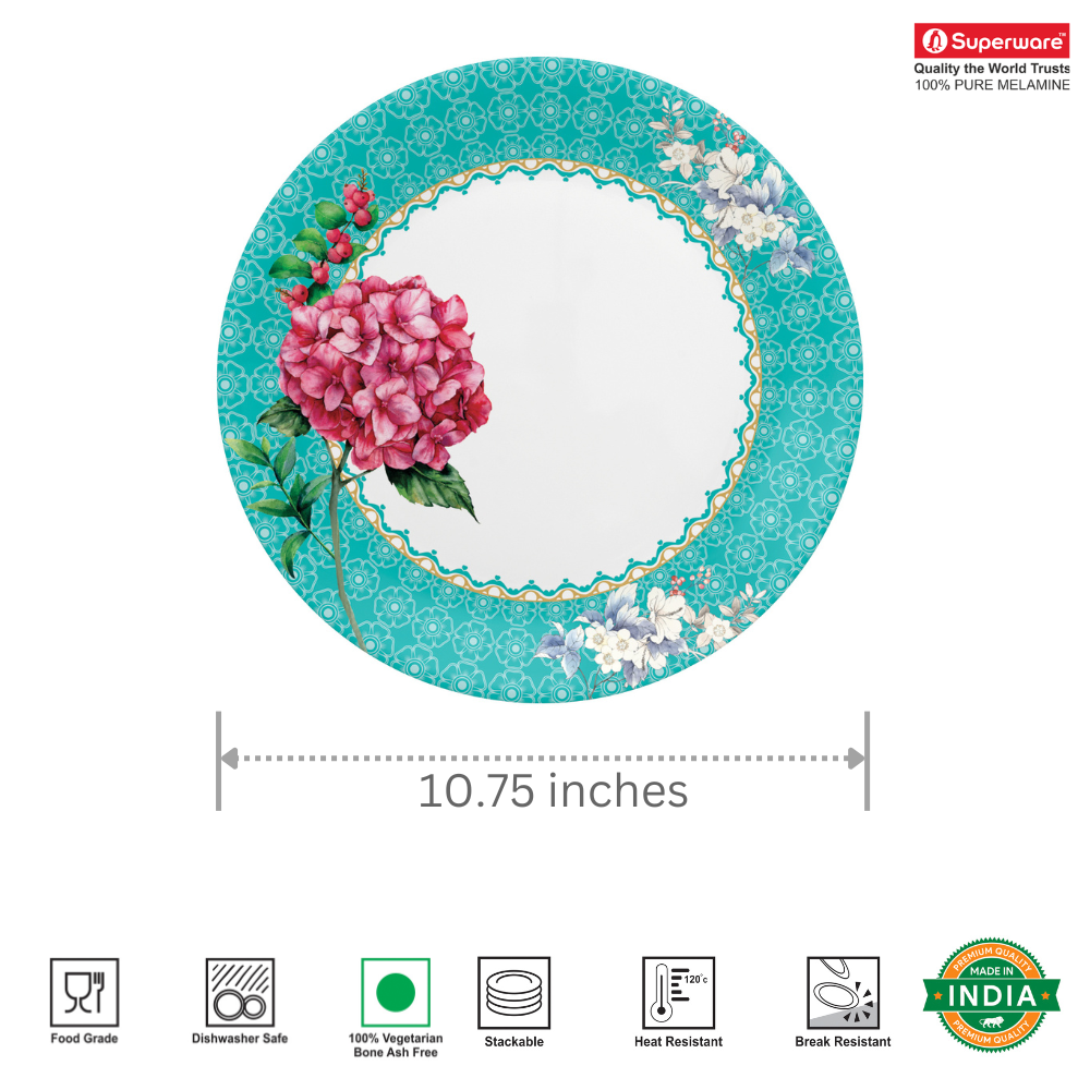 SUPERWARE | Pure Melamine | Dinner Plate Set – Olender (10.75”) | 6 Nos. | Stain Free, Glazed Finish