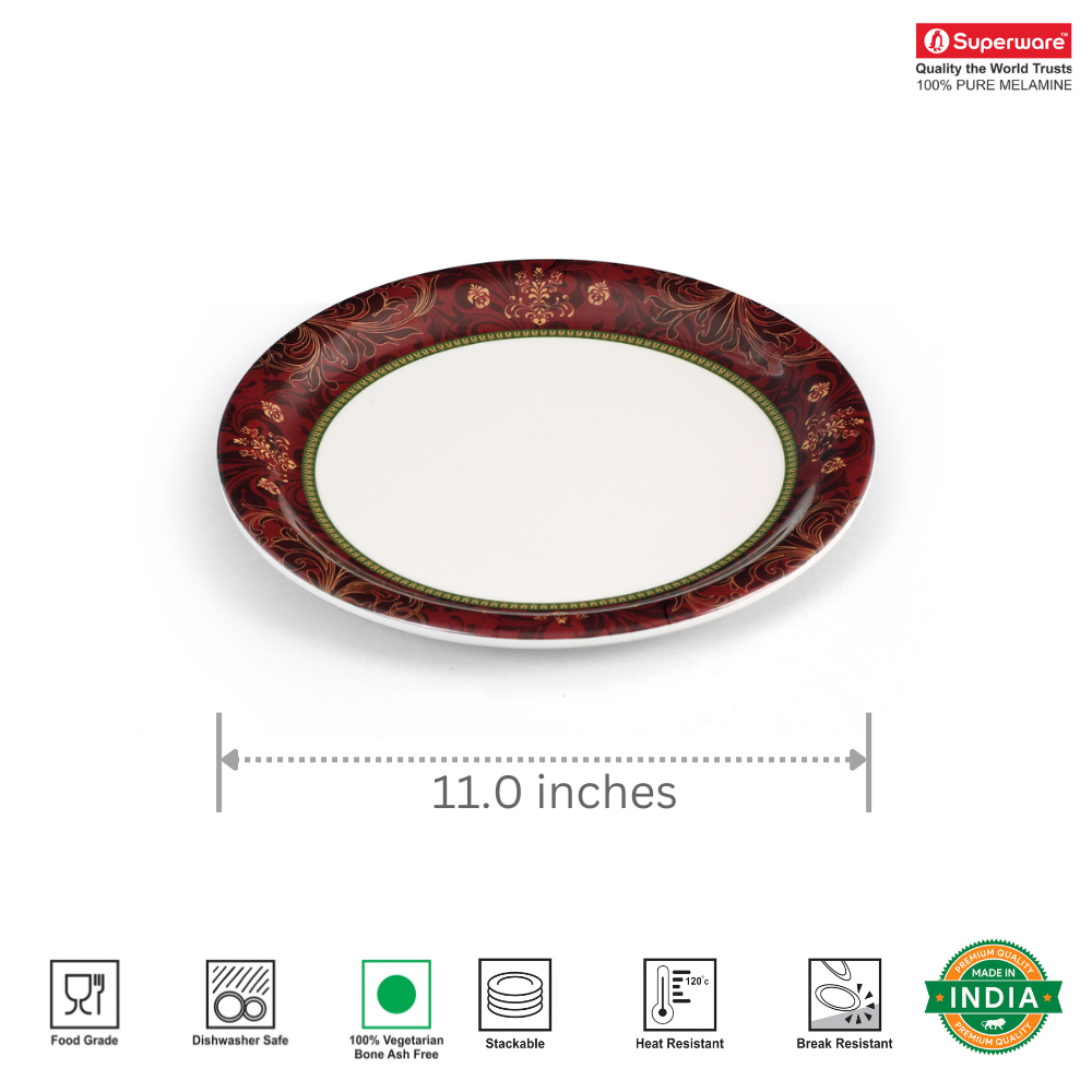 SUPERWARE | Pure Melamine | Dinner Plate Set – Ornamental (11.0") | 6 Nos. | Stain Free, Glazed Finish