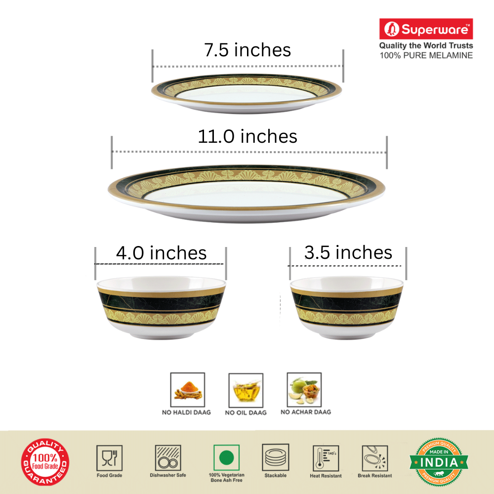 SUPERWARE, Pure Melamine | Dinner Set - MAJESTIC | Set Of 16 Pcs. | Stain Free, Glazed Finish