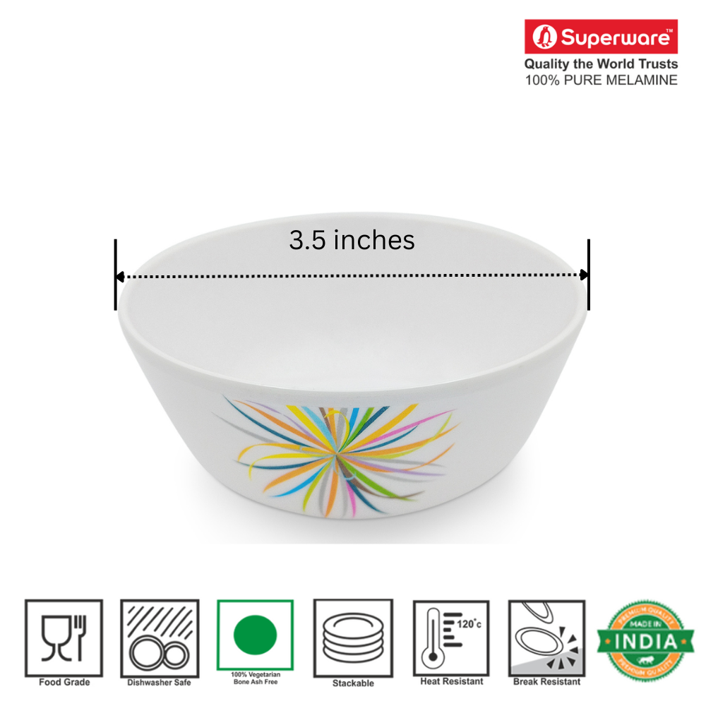 SUPERWARE | Pure Melamine | Katori Set - CELEBRATION (3.5") | 6 Nos.| Stain Free, Glazed Finish