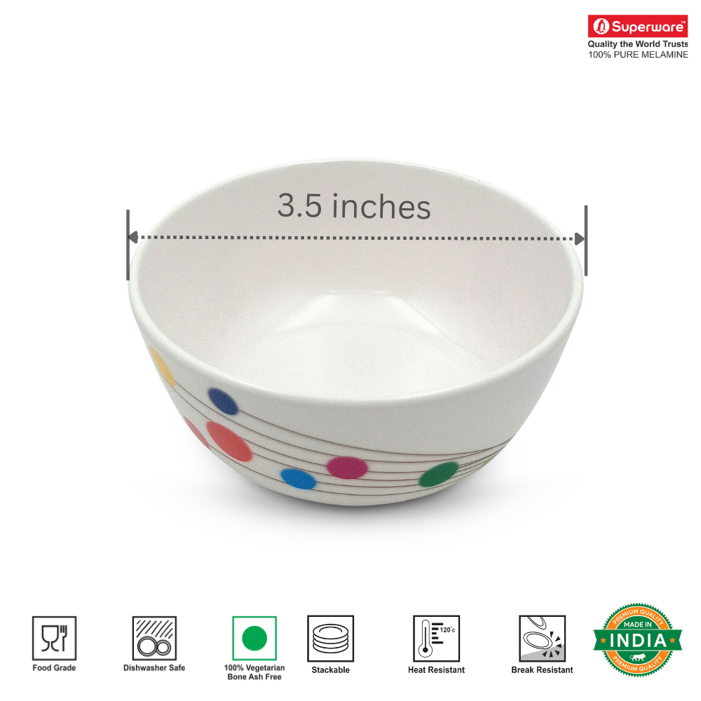 SUPERWARE | Pure Melamine | Katori Set - COLOUR BUBBLES (3.5") | 6 Nos. | Stain Free, Glazed Finish