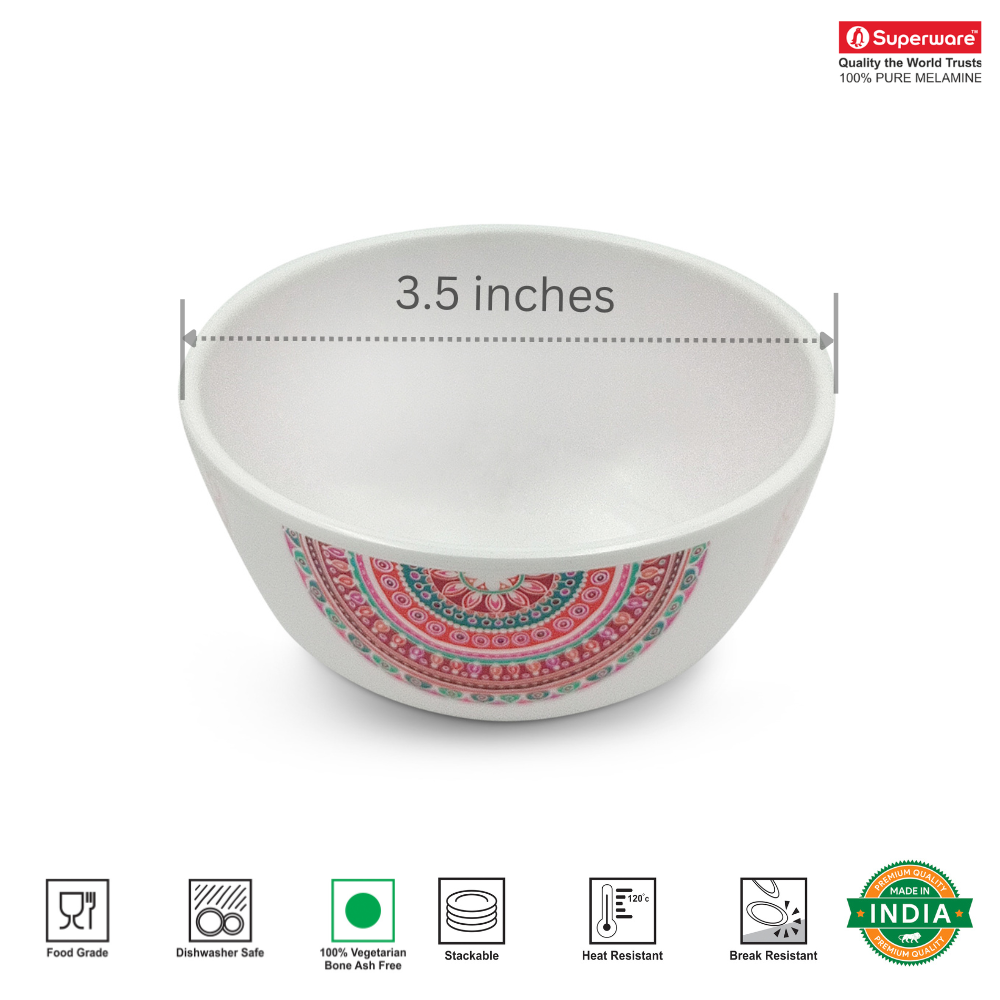 SUPERWARE | Pure Melamine | Katori Set - FESTIVE (3.5") | 6 Nos.| Stain Free, Glazed Finish