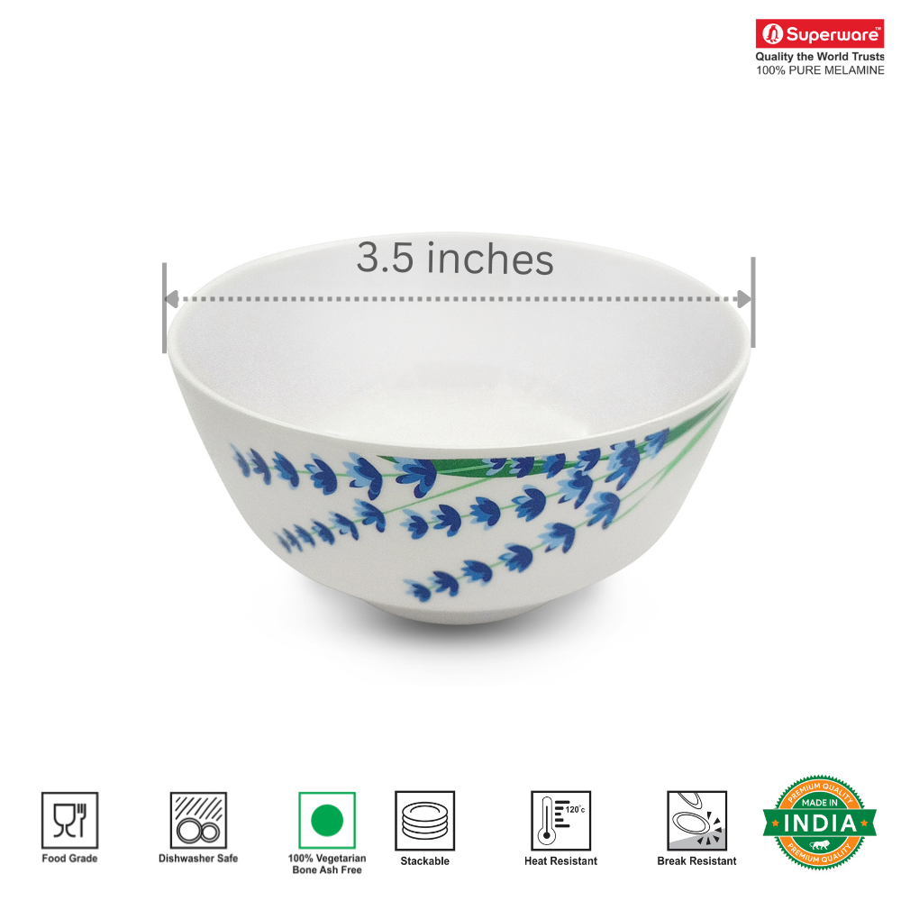 SUPERWARE | Pure Melamine | Katori Set - LAVENDER (3.5") | 6 Nos.| Stain Free, Glazed Finish