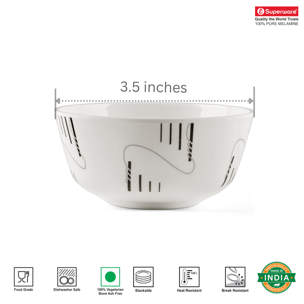 SUPERWARE | Pure Melamine | Katori Set - STRIP & ROPES (3.5 ") | 6 Nos. | Stain Free, Glazed Finish