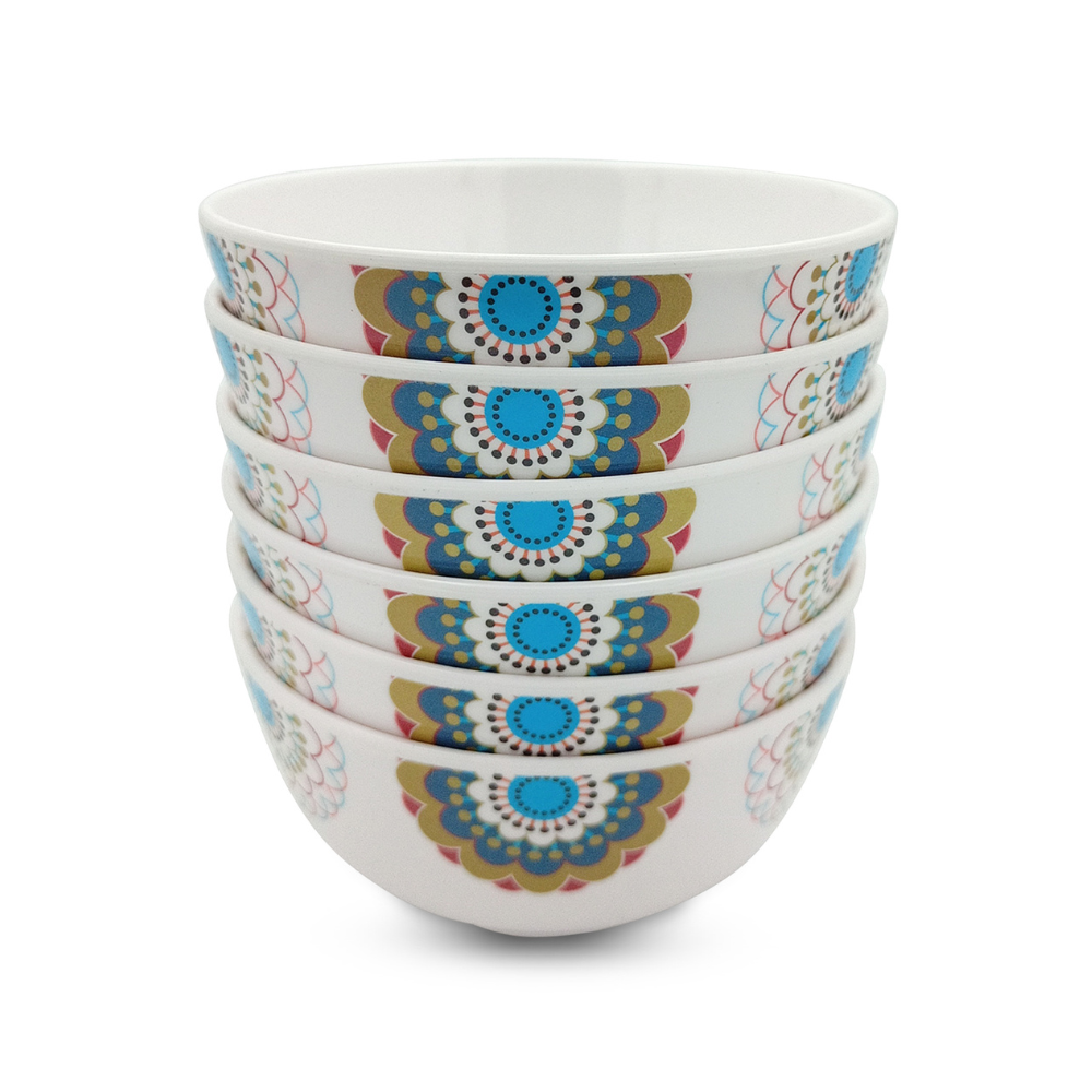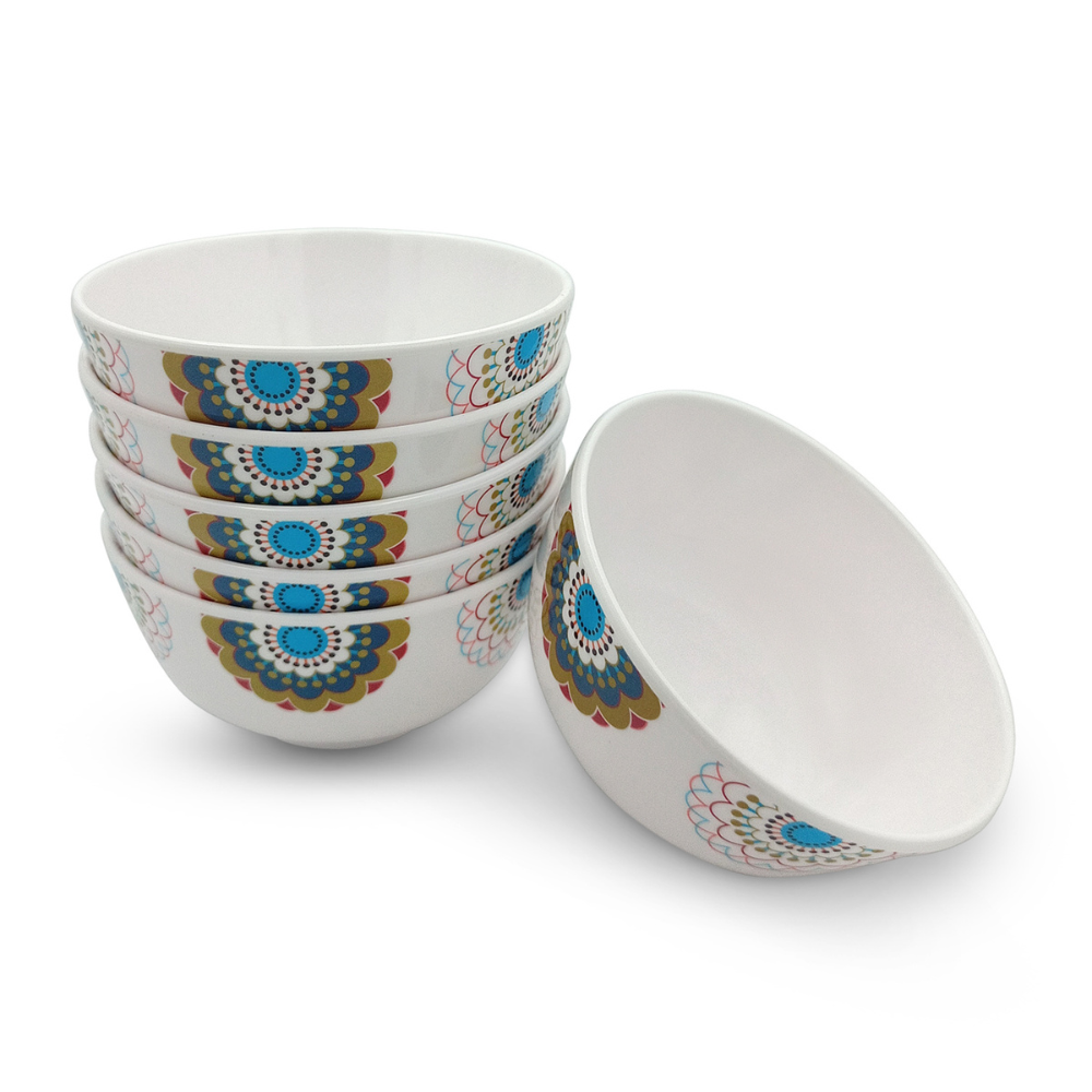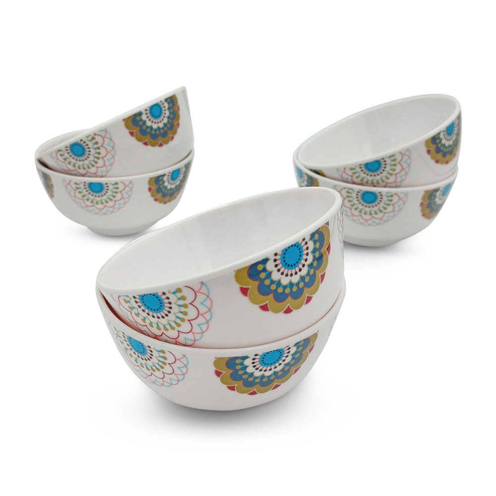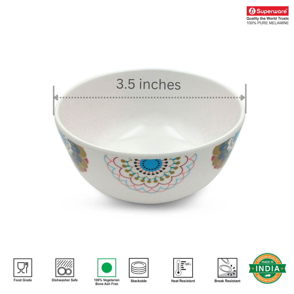 SUPERWARE | Pure Melamine | Katori Set - TURQUISE BLOOM (3.5") | 6 Nos. | Stain Free, Glazed Finish