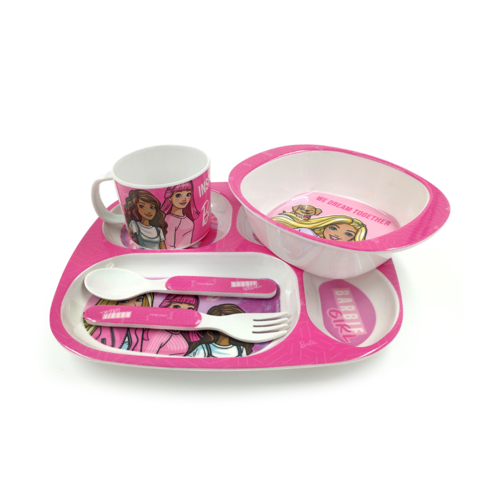 SUPERWARE | Pure Melamine | Kid Set - BARBIE - WISPY FOREST | Set Of 5 Pcs.| Stain Free, Glazed Finish