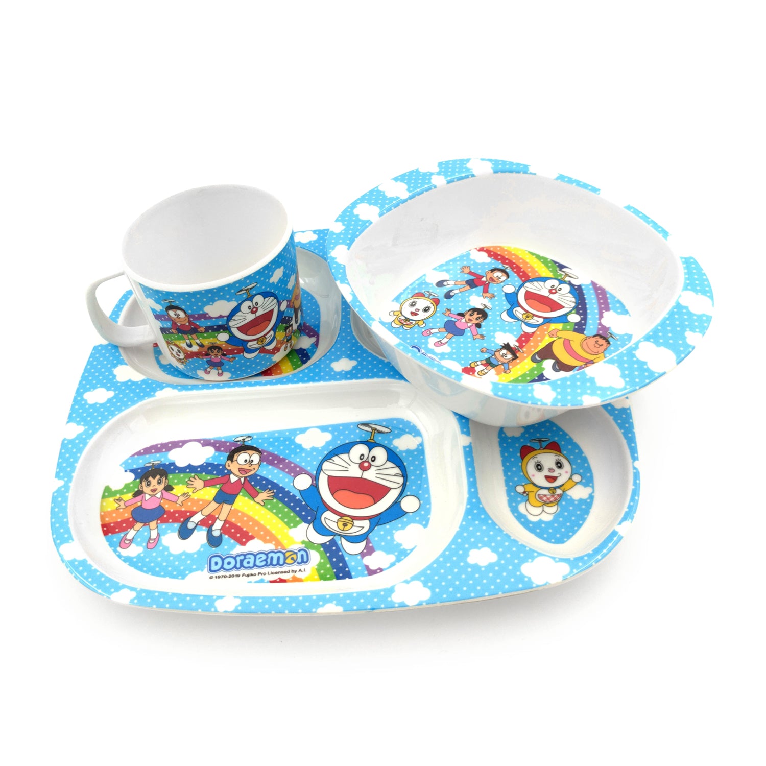 SUPERWARE | Pure Melamine | Kid Set - DORAEMON RAINBOW | 3 Pcs.| Stain Free, Glazed Finish