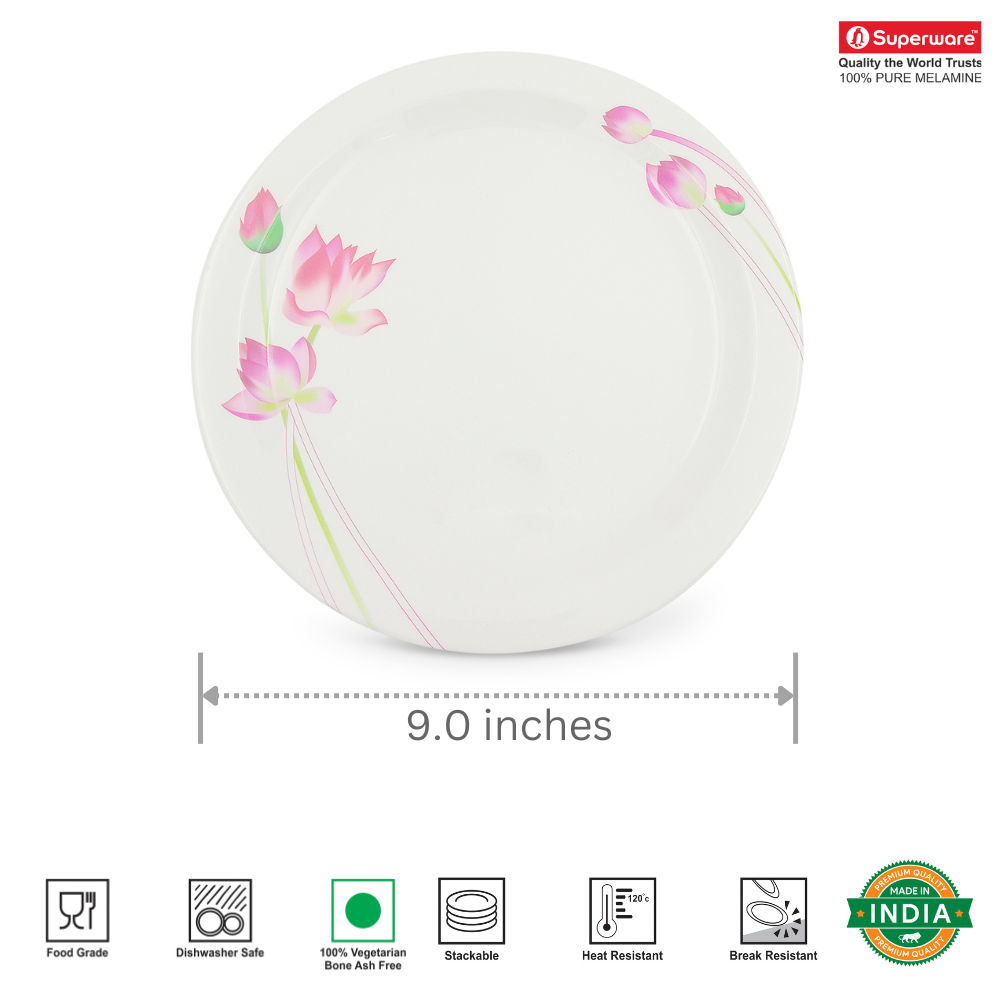 SUPERWARE | Pure Melamine | Medium Plate Set - SWEETY TULIP (9.0") | 6 Nos. | Stain free, Glazed finish