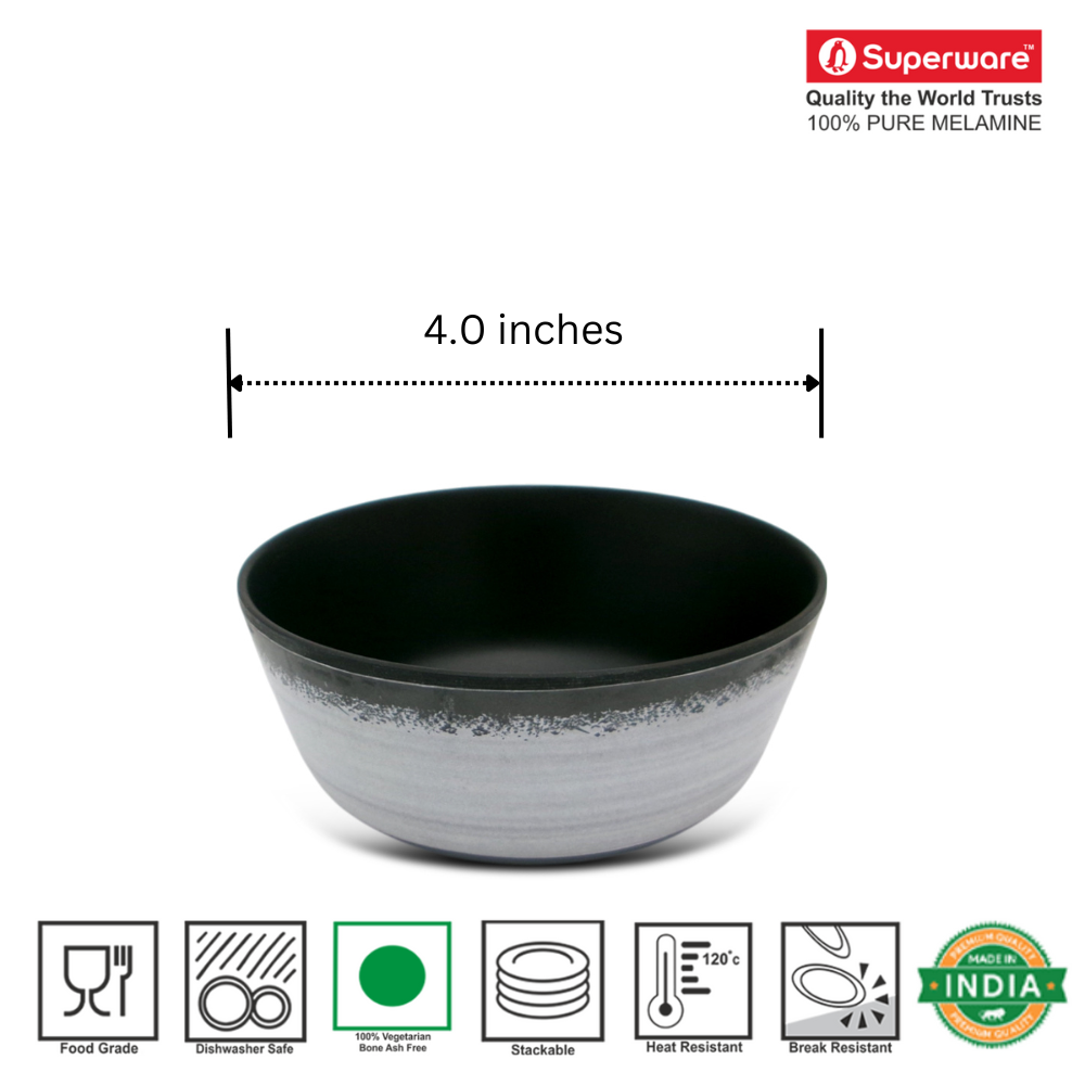 SUPERWARE | Pure Melamine | Bowl Set - Circular Black-Matte 4" | 6 Nos. | Stain Free, Glazed Finish