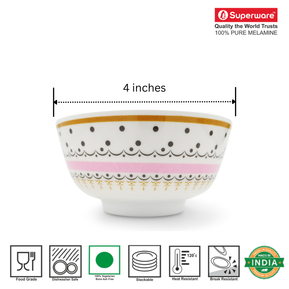 SUPERWARE | Pure Melamine | Bowl Set - Diamond 4" | 6 Nos.| Stain Free, Glazed Finish