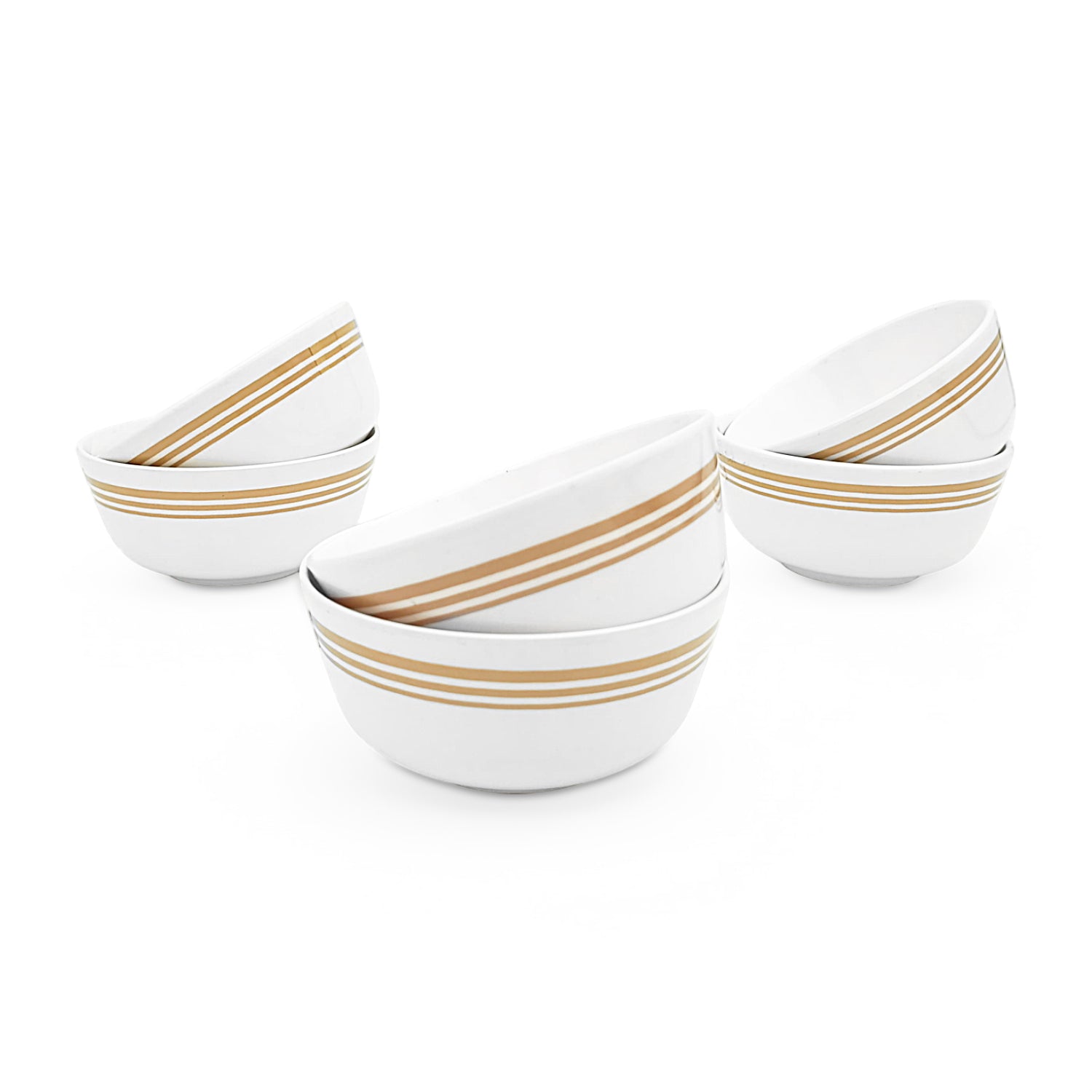 SUPERWARE | Pure Melamine | Bowl Set - Golden Lines 4" | 6 Nos. | Stain Free, Glazed Finish