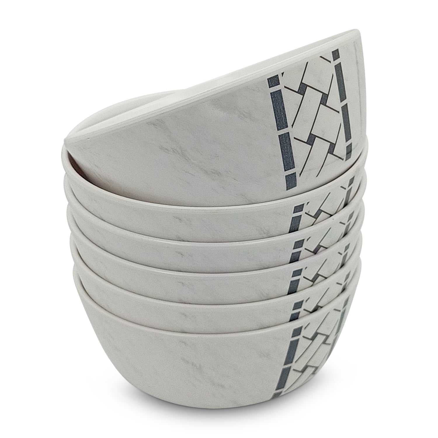 SUPERWARE | Pure Melamine | Bowl Set - Marbo Stitch 4" | 6 Nos. | Stain Free, Glazed Finish