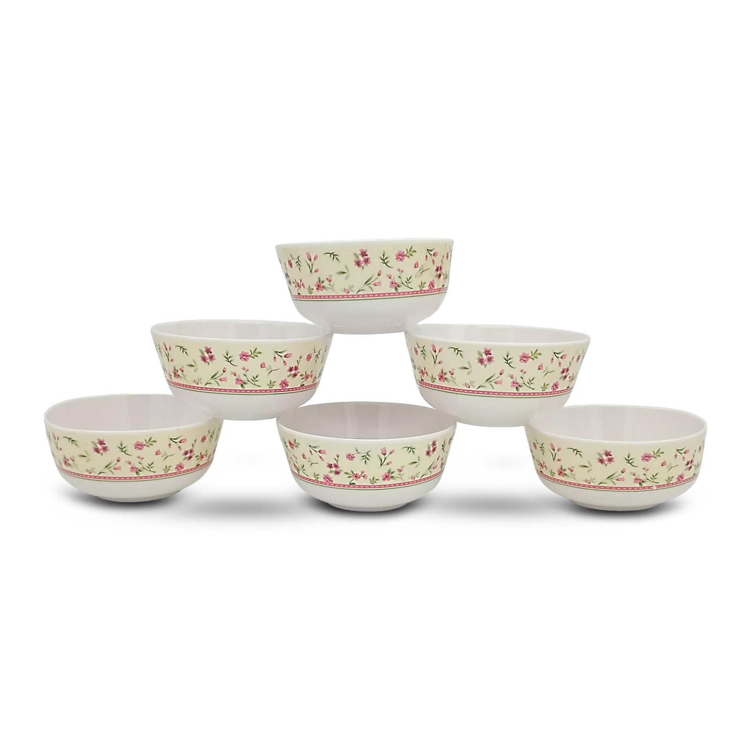 SUPERWARE | Pure Melamine | Bowl Set - Rose Garden 4" | 6 Nos. | Stain Free, Glazed Finish