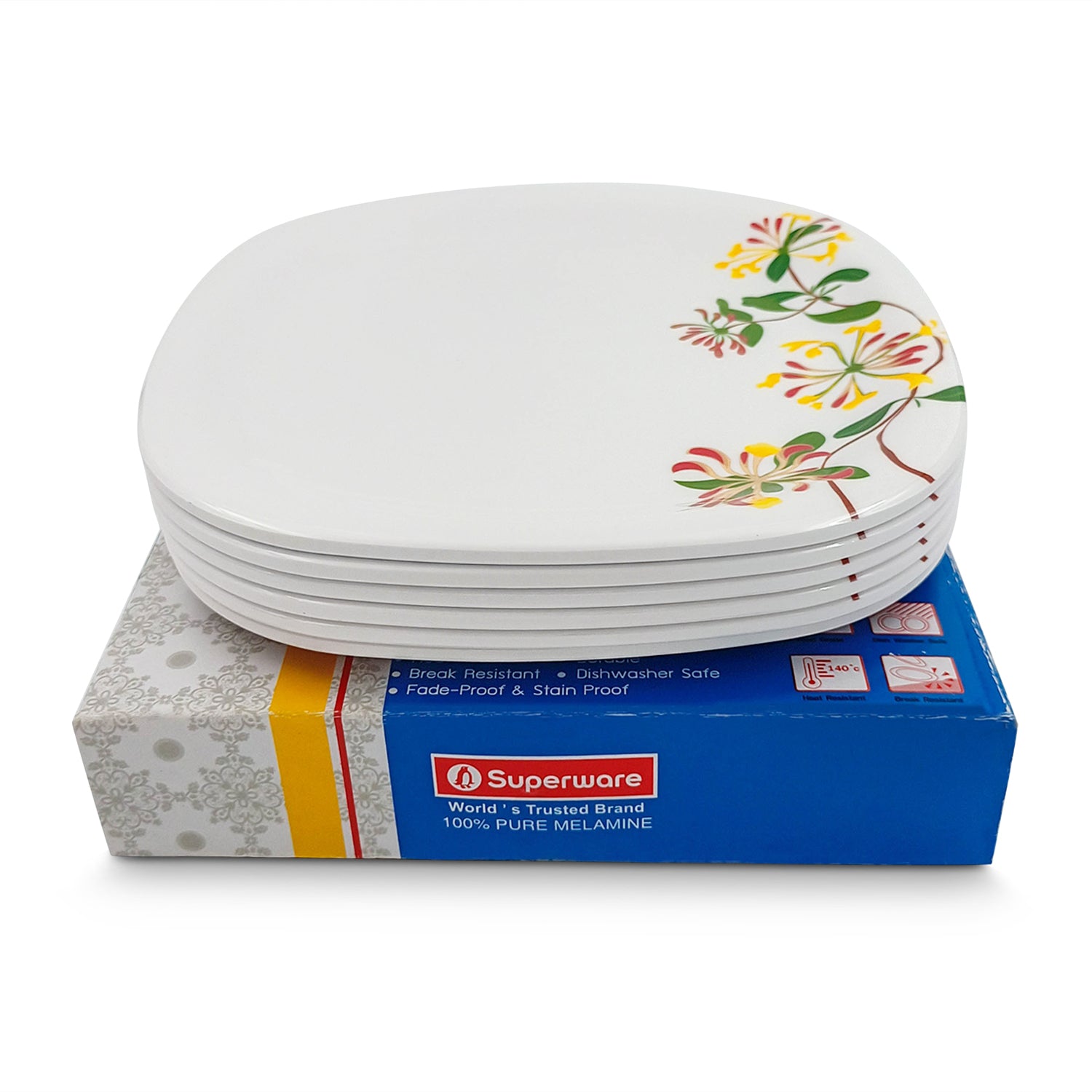 SUPERWARE | Pure Melamine | Buffet Plate Set 12.5" - Botanic Flower (12.5”) | 6 Nos. | Stain Free, Glazed Finish