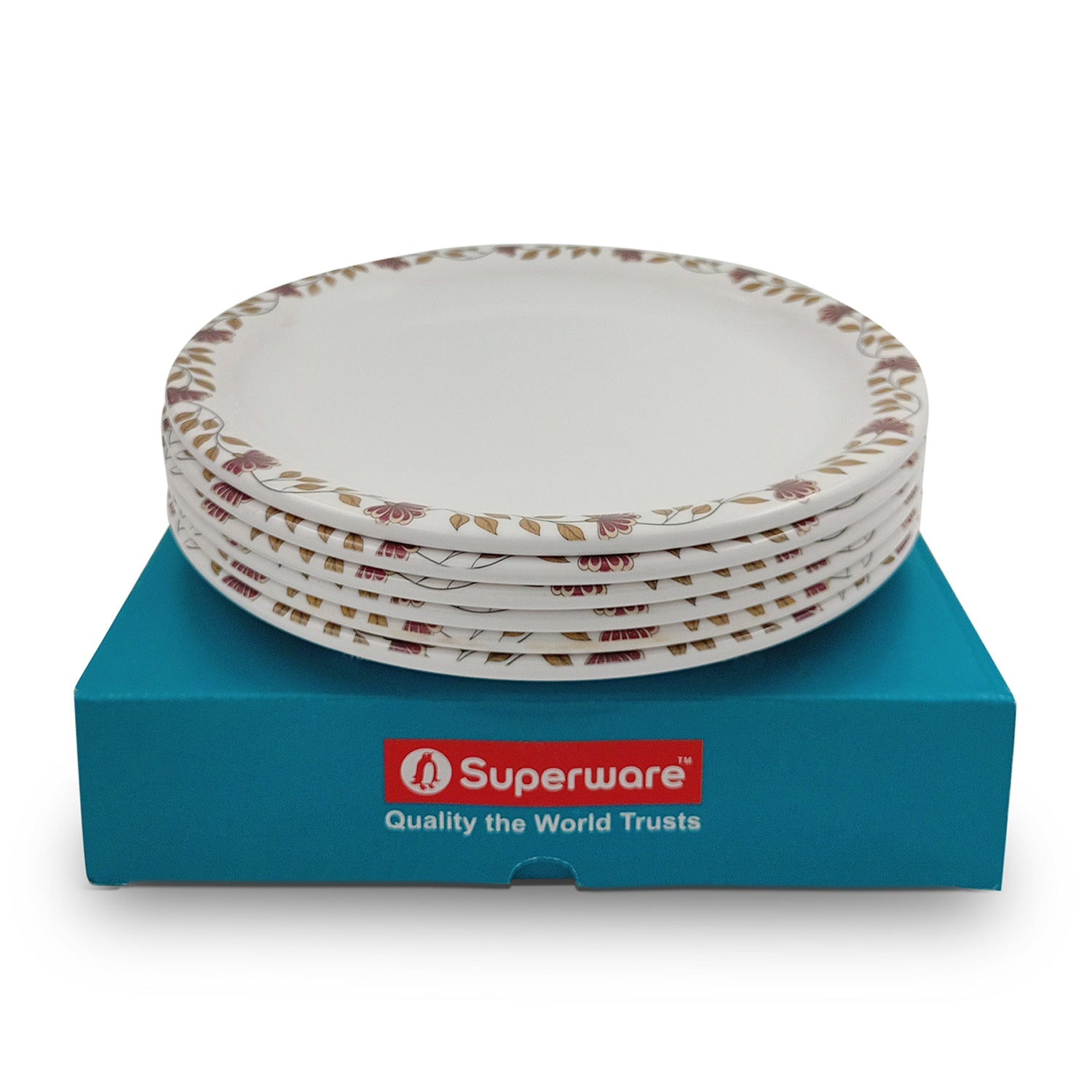 SUPERWARE | Pure Melamine | Buffet Plate Set – Garden Flower (12.5”) | 6 Nos. | Stain Free, Glazed Finish
