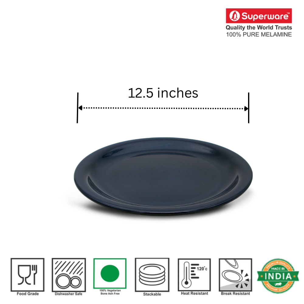 SUPERWARE | Pure Melamine | Buffet Plate Set – Sapphire (12.5”) | 6 Nos. | Stain Free, Glazed Finish