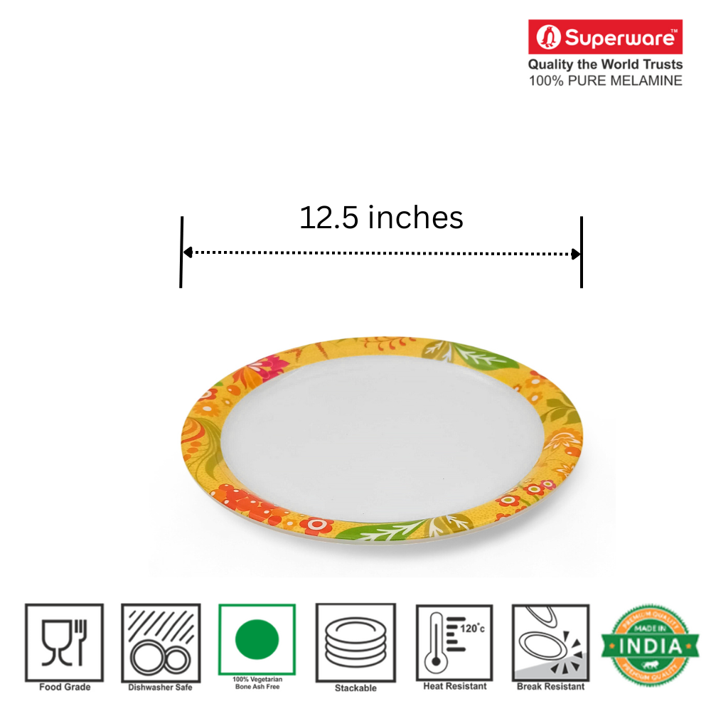 SUPERWARE | Pure Melamine | Buffet Plate Set – Batik (12.5”) | 6 Nos. | Stain Free, Glazed Finish