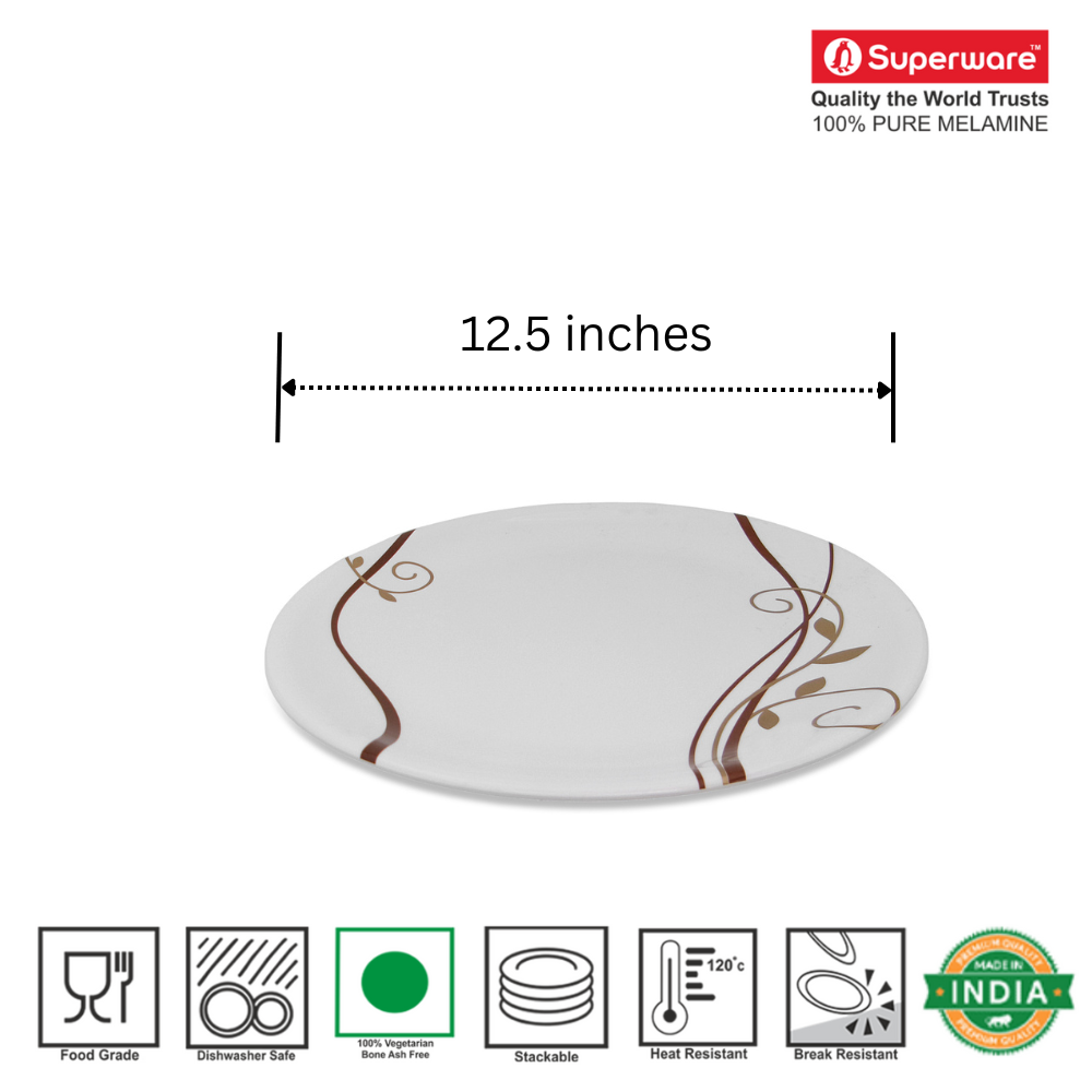 SUPERWARE | Pure Melamine | Buffet Plate Set – Spiral Fluer (12.5”) | 6 Nos. | Stain Free, Glazed Finish