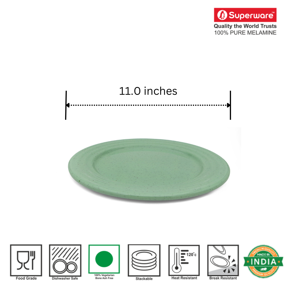 SUPERWARE | Pure Melamine | Classic Plus Dinner Plate Set - Green Sand (11.0") | 6 Nos. | Stain Free, Glazed Finish