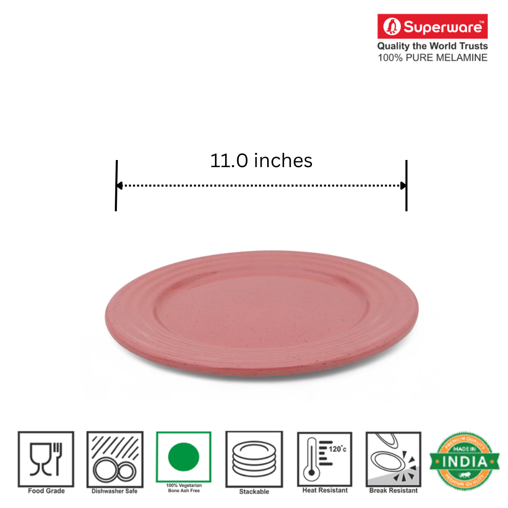 SUPERWARE | Pure Melamine | Classic Plus Dinner Plate Set - Pink Sand (11.0") | 6 Nos. | Stain Free, Glazed Finish