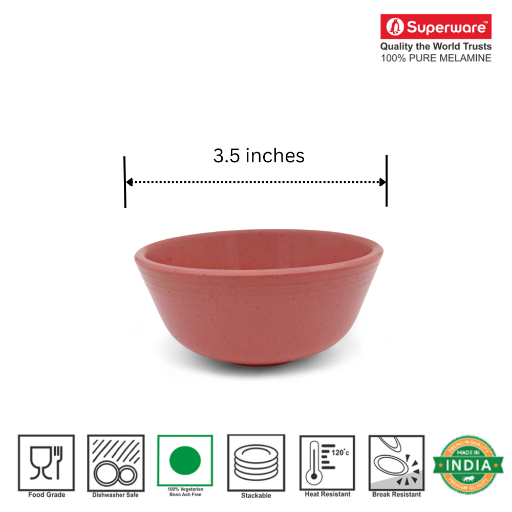 SUPERWARE | Pure Melamine | Classic Plus Katori Set - Pink Sand (3.5") | 6 Nos. | Stain Free, Glazed Finish