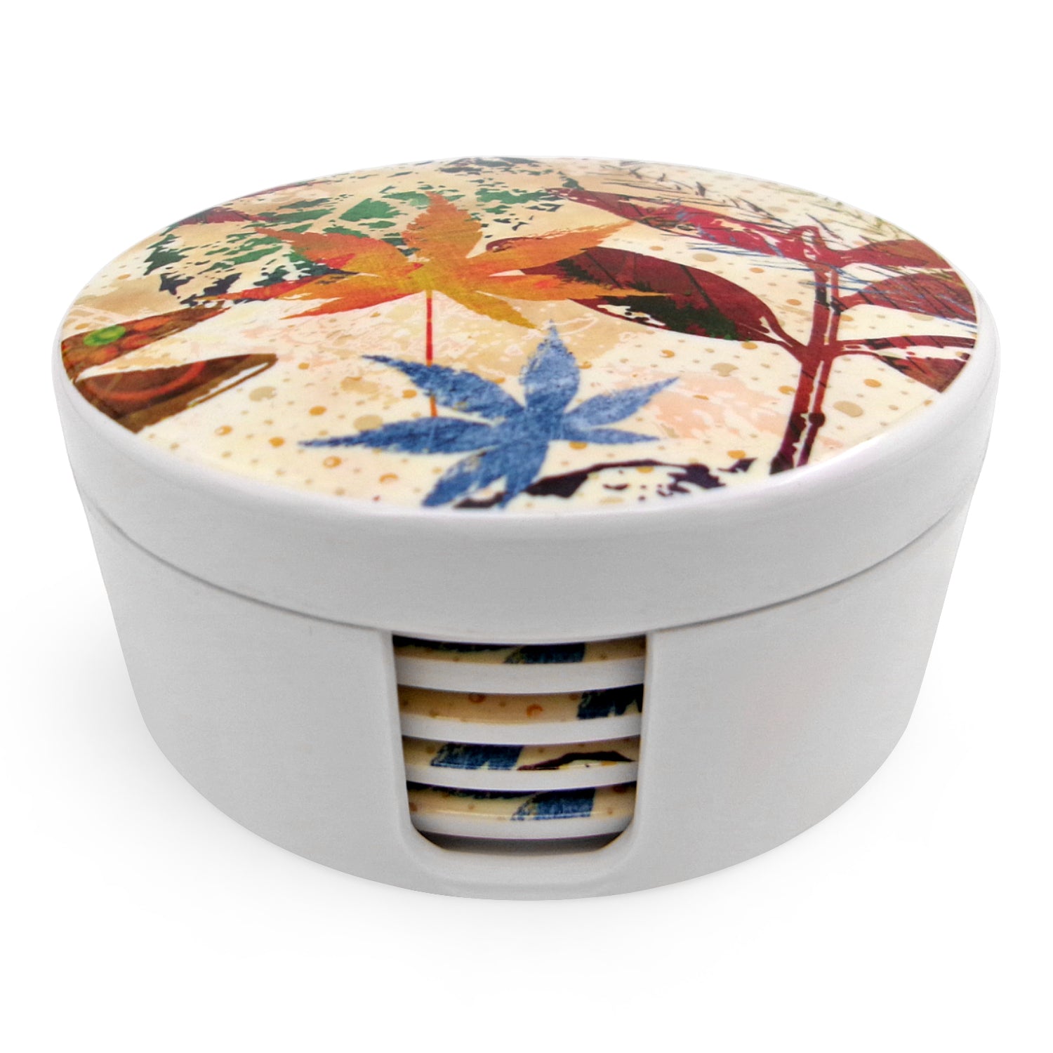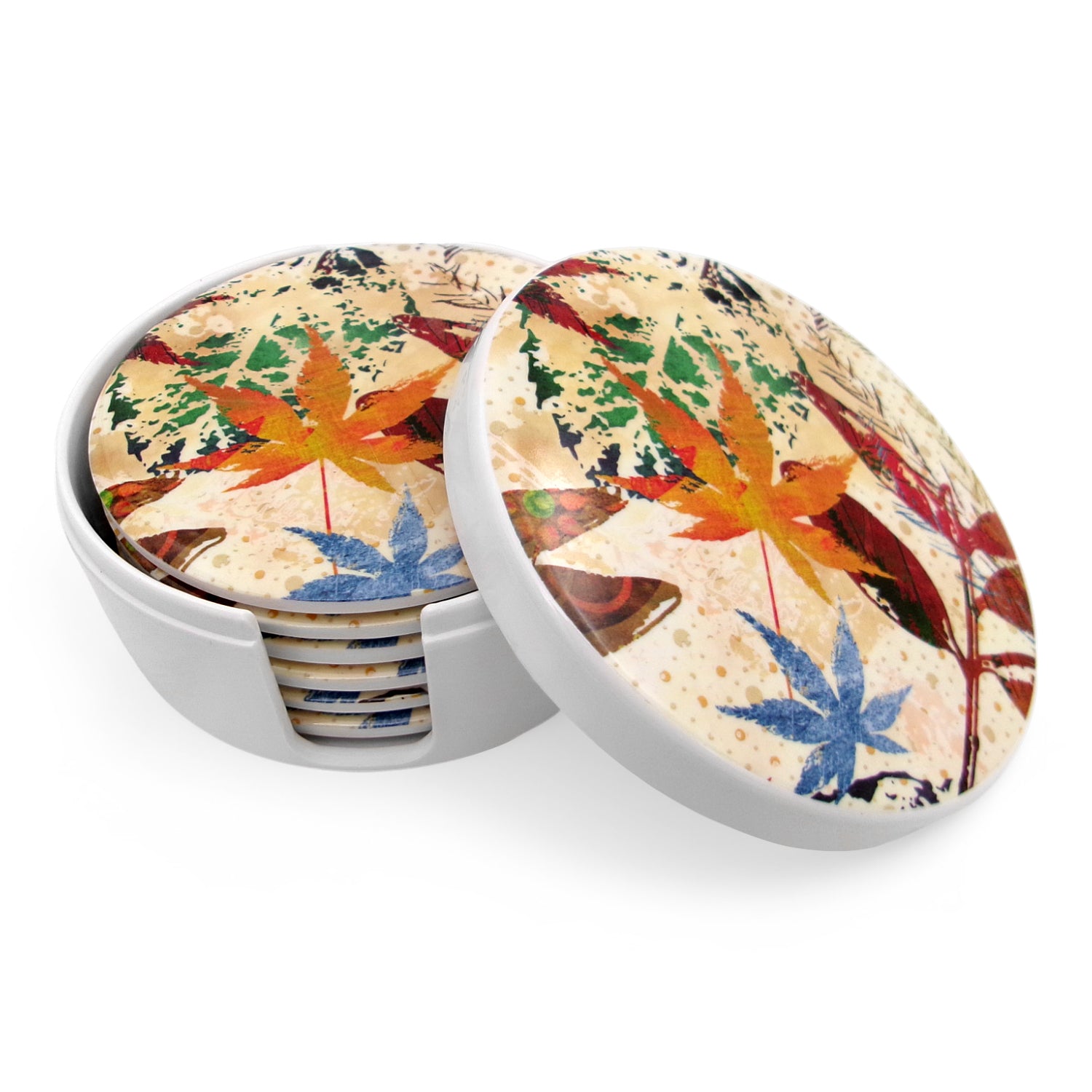SUPERWARE | Pure Melamine | Coasters- Floresta on White | Set Of 8 Pcs | Stain Free, Glazed Finish