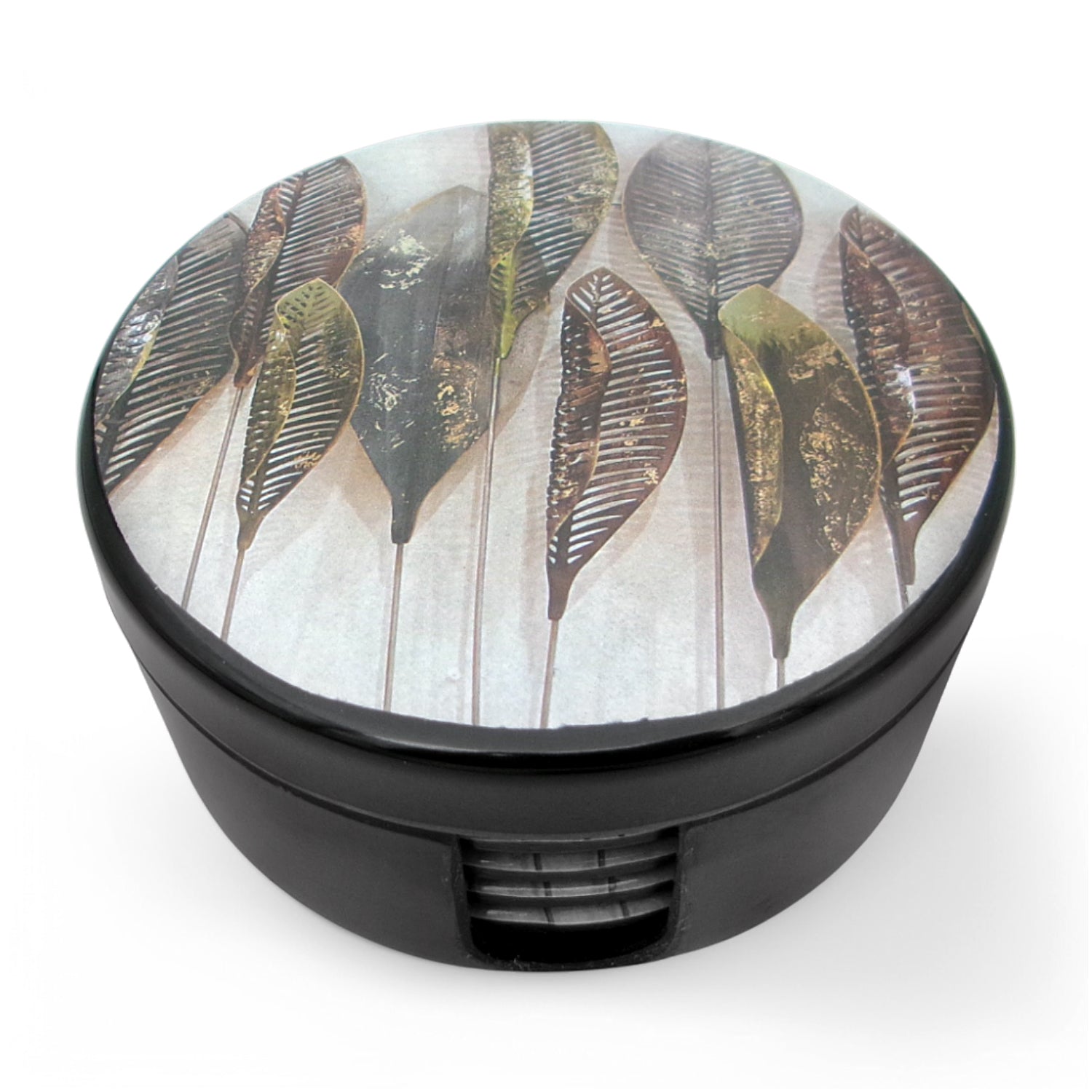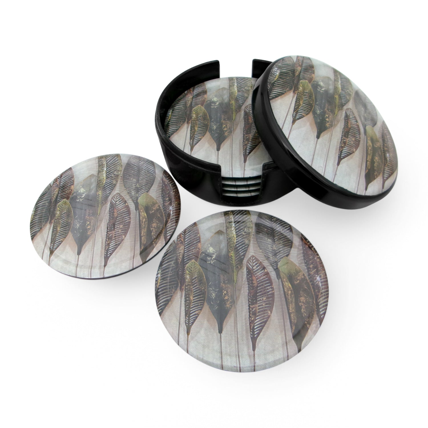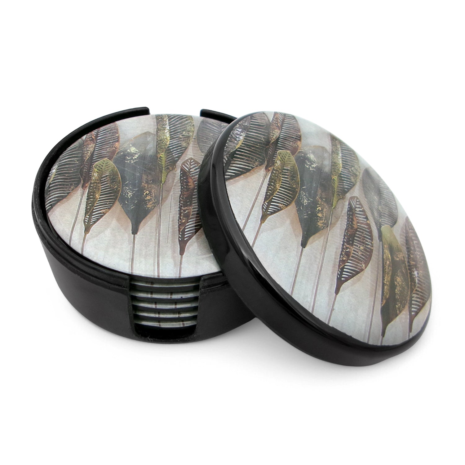 SUPERWARE | Pure Melamine | Coasters - Layla Leave On Black | Set Of 8 Pcs | Stain Free, Glazed Finish