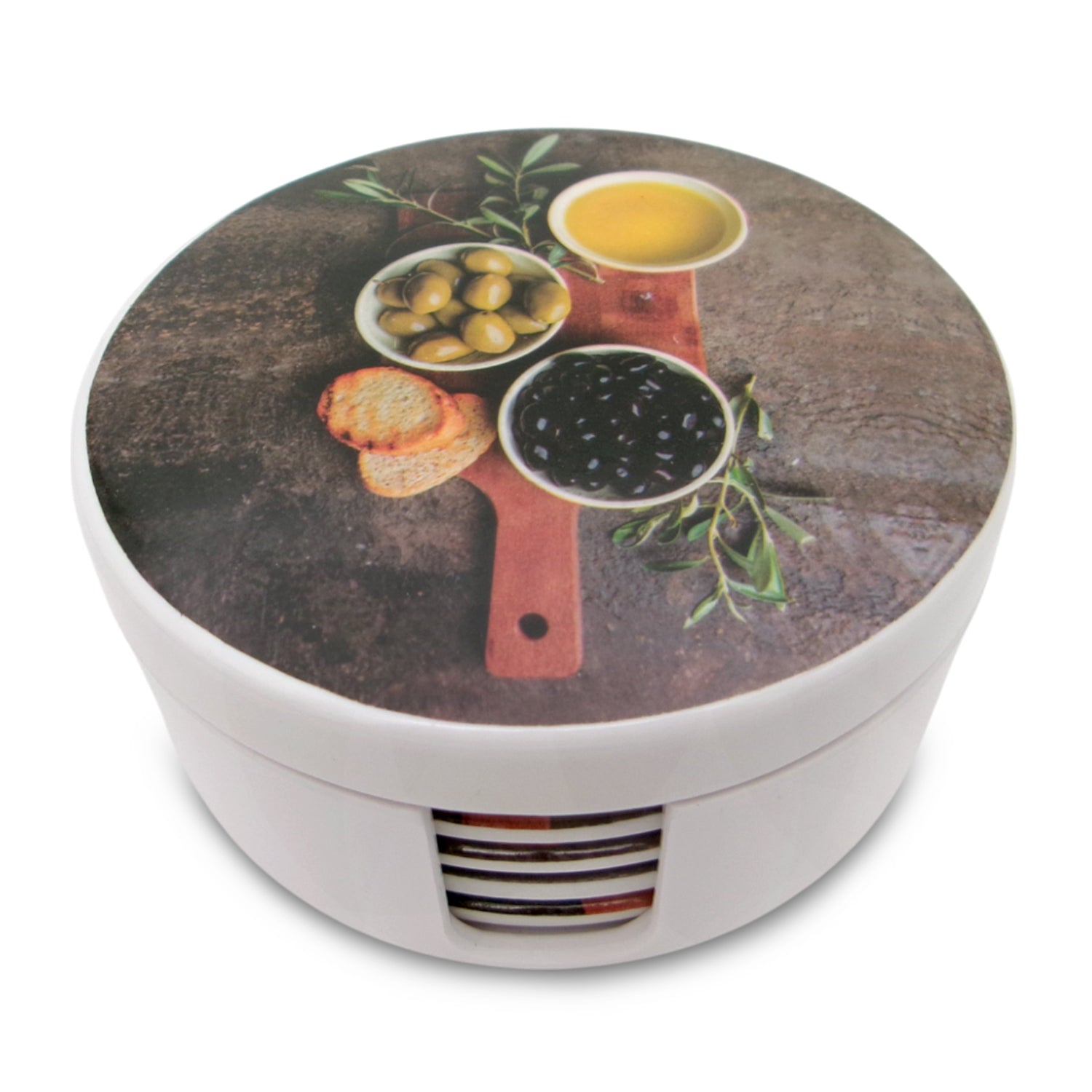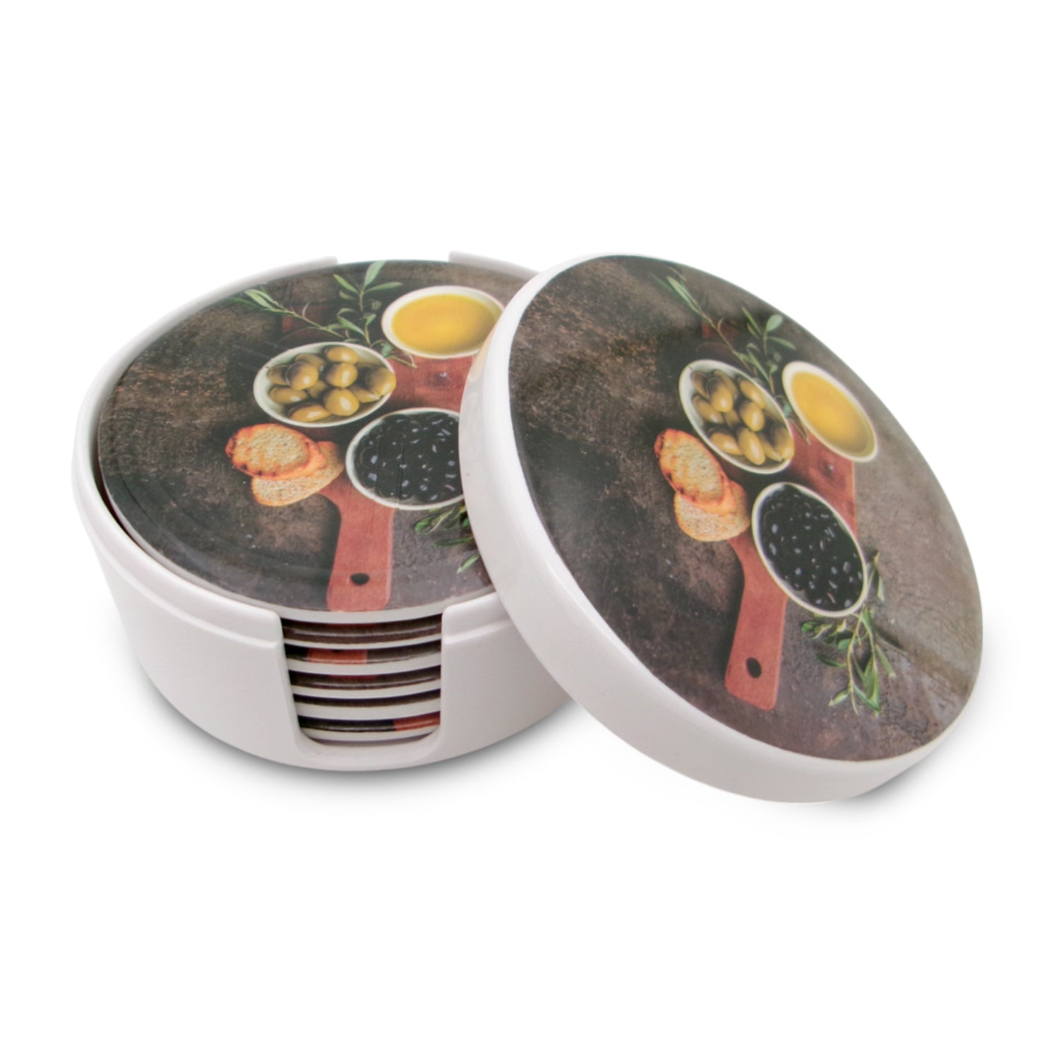 SUPERWARE | Pure Melamine | Coasters - Olive Oil On White | Set Of 8 Pcs | Stain Free, Glazed Finish