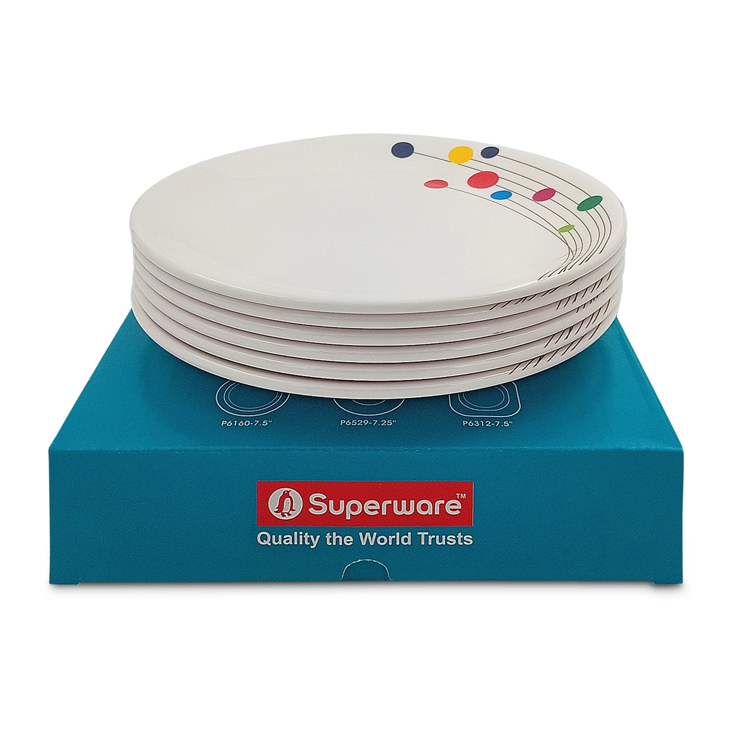 SUPERWARE | Pure Melamine | Dinner Plate Set – Colour Bubbles (10.75”) | 6 Nos. | Stain Free, Glazed Finish