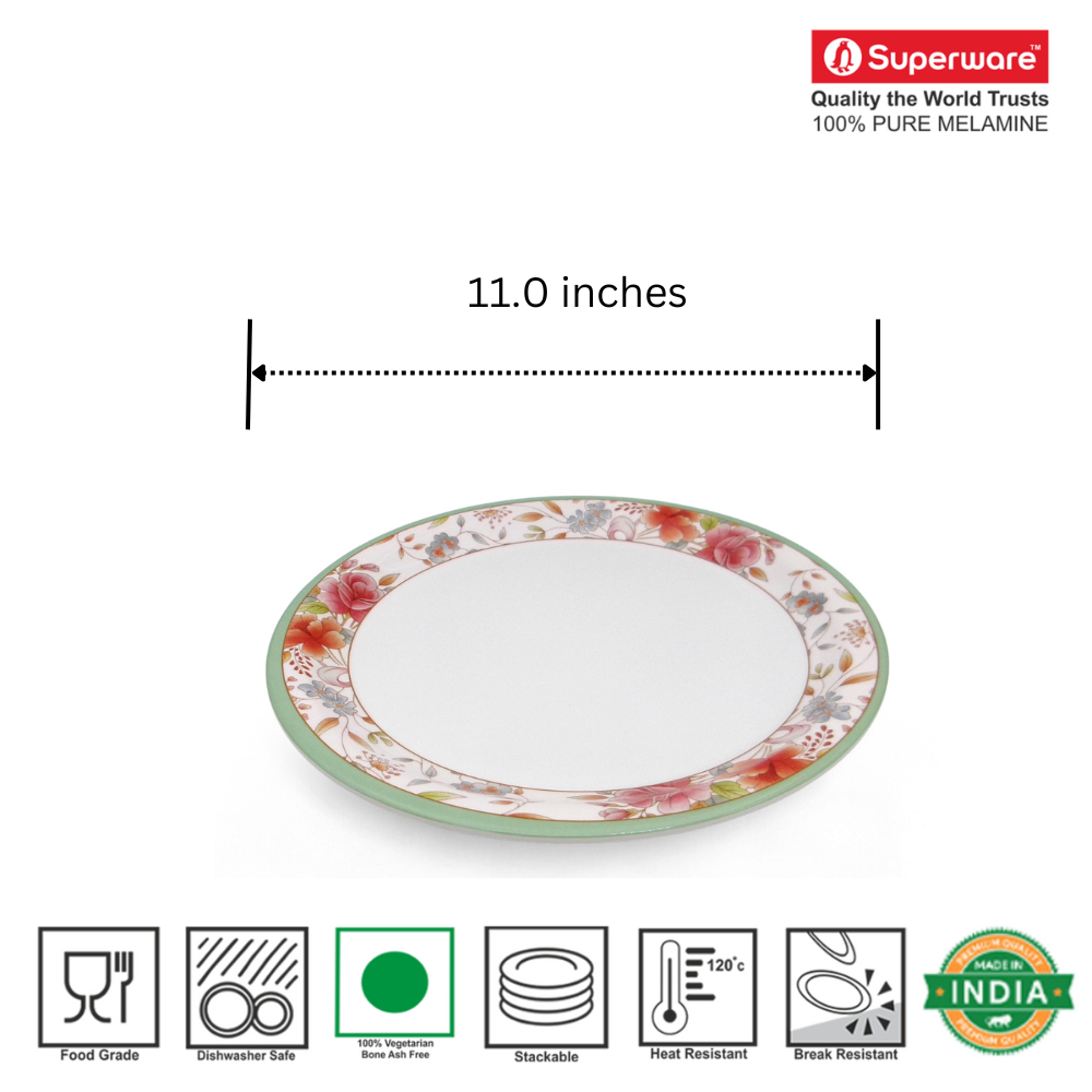 SUPERWARE | Pure Melamine | Dinner Plate Set – Floris (11.0") | 6 Nos. | Stain Free, Glazed Finish