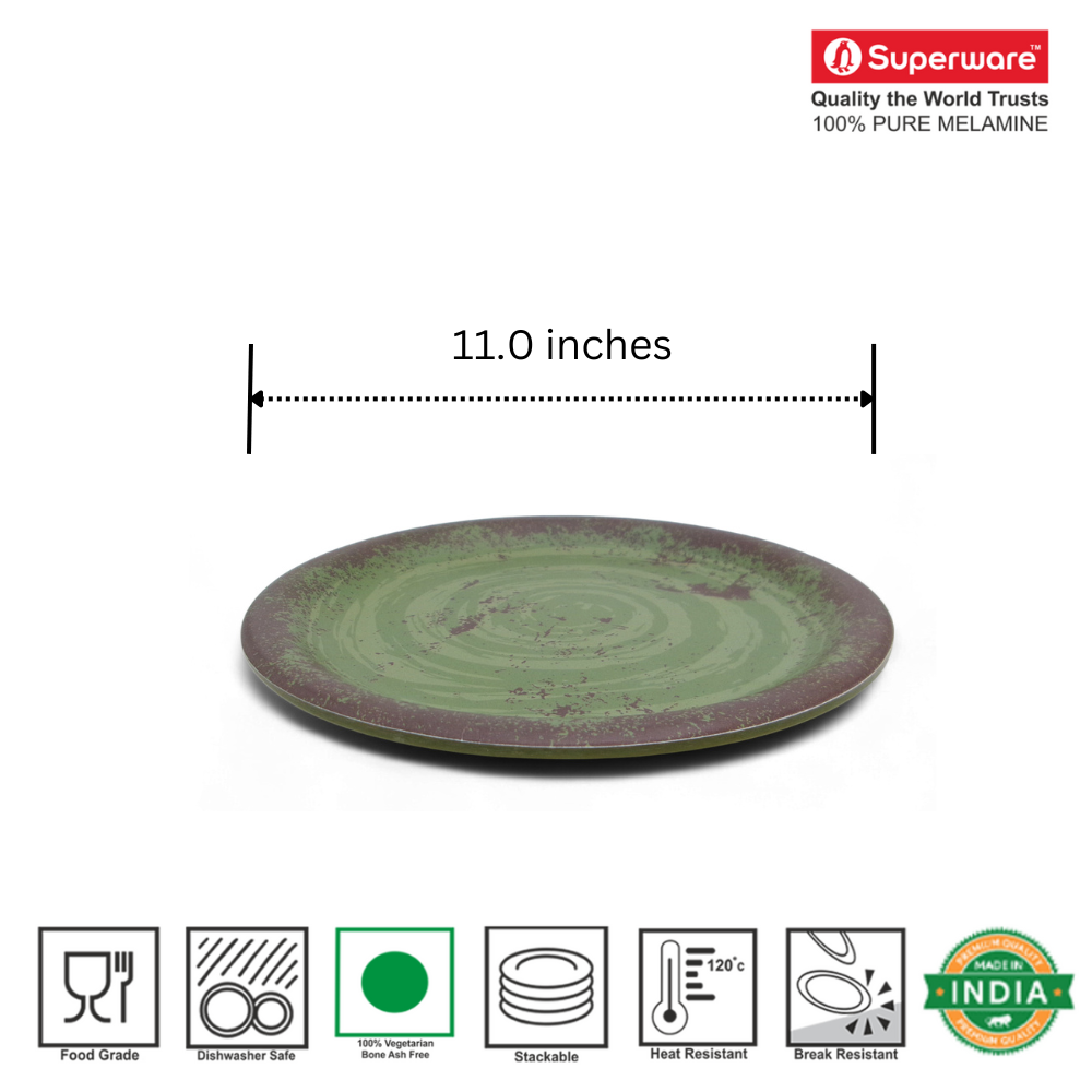 SUPERWARE | Pure Melamine | Dinner Plate Set - Rustic Q Olive Green (11.0") | 6 Nos. | Stain Free, Glazed Finish
